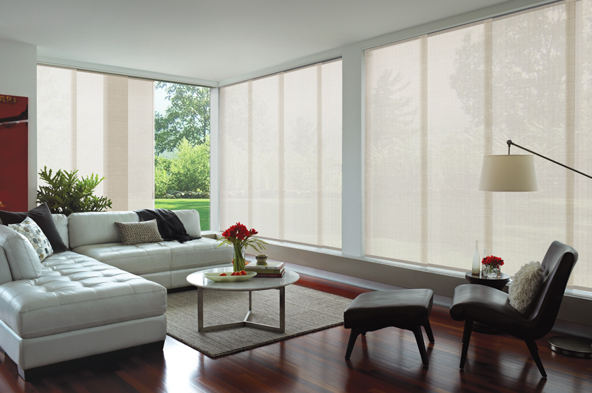 For effortless luxury and style, choose LUXAFLEX® Luminette® Privacy Sheers. These subtly curved and timeless vertical window coverings rotate for privacy and light control, allowing a soft and flattering light to filter through to any room, while still maintaining your essential privacy.