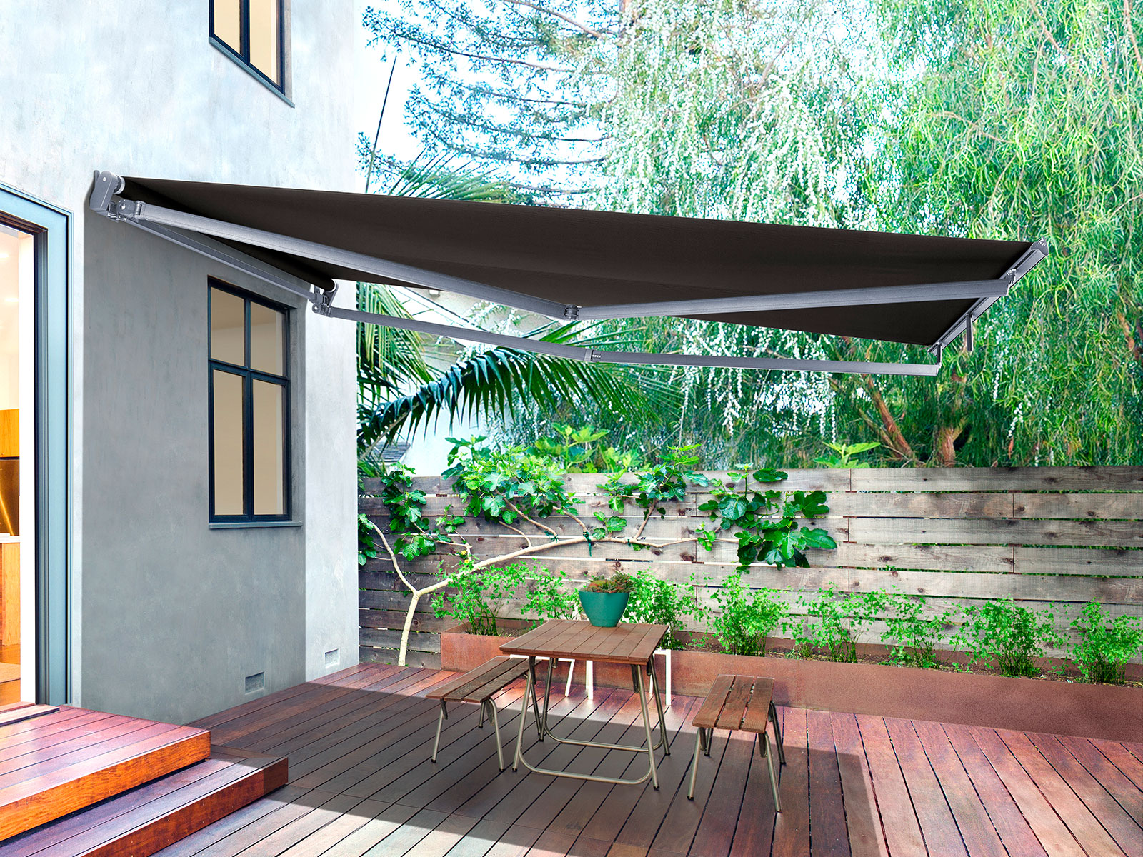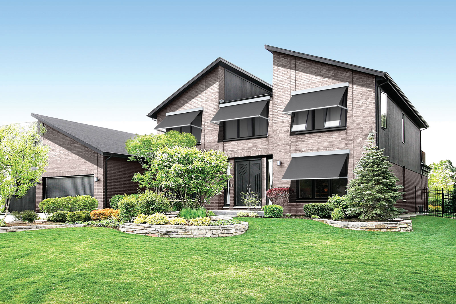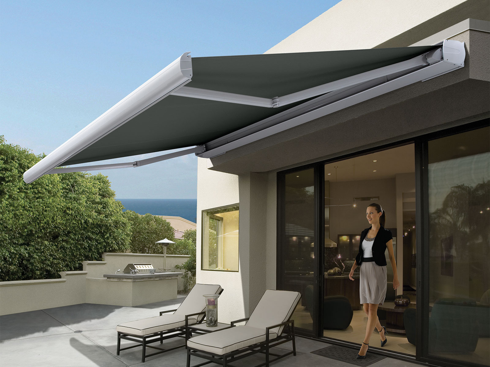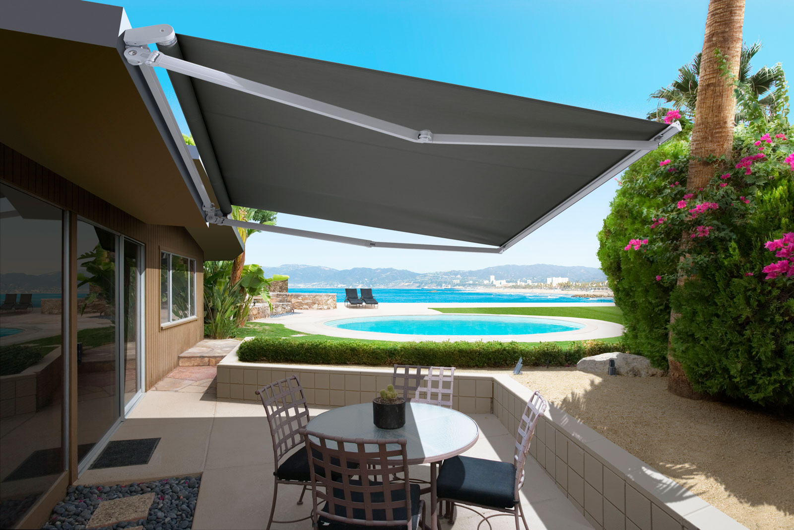A contemporary collection of folding arm, straight drop and pivot arm style awning systems.
