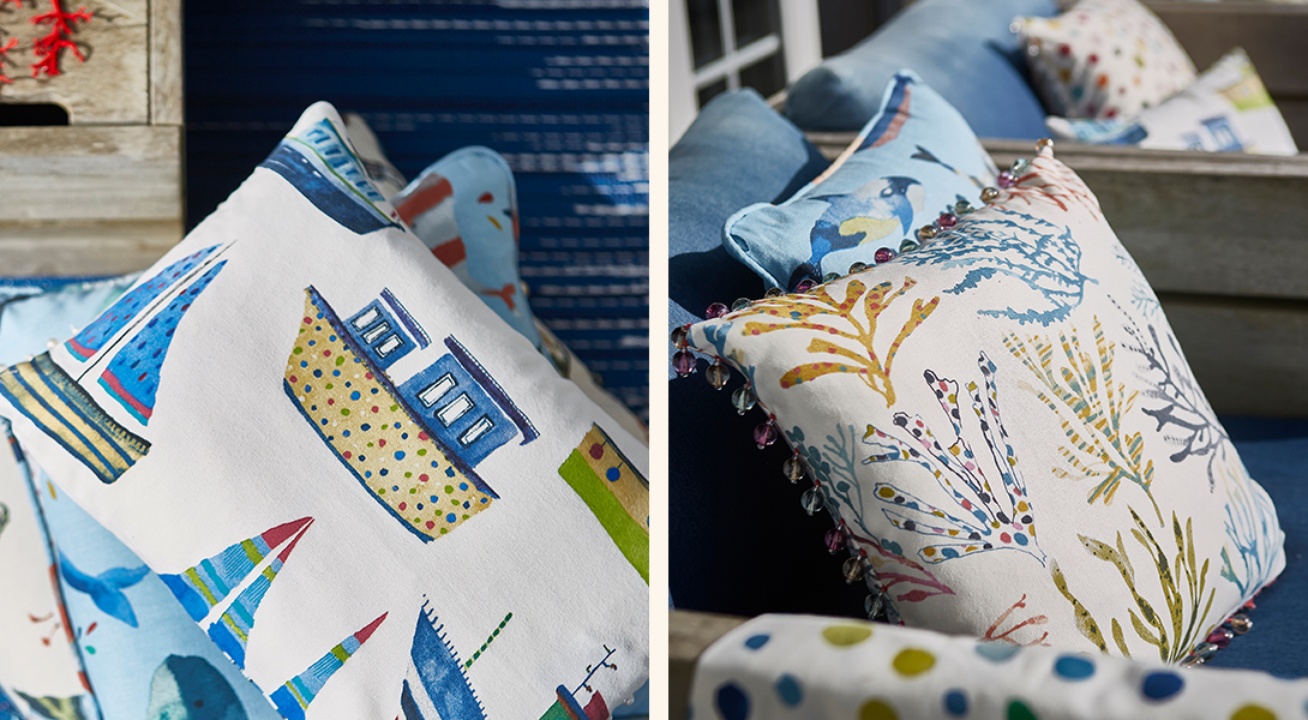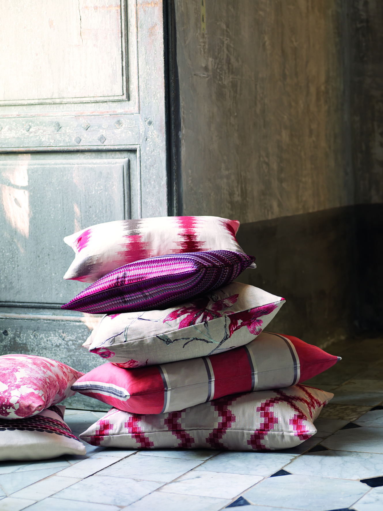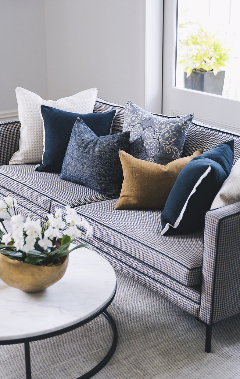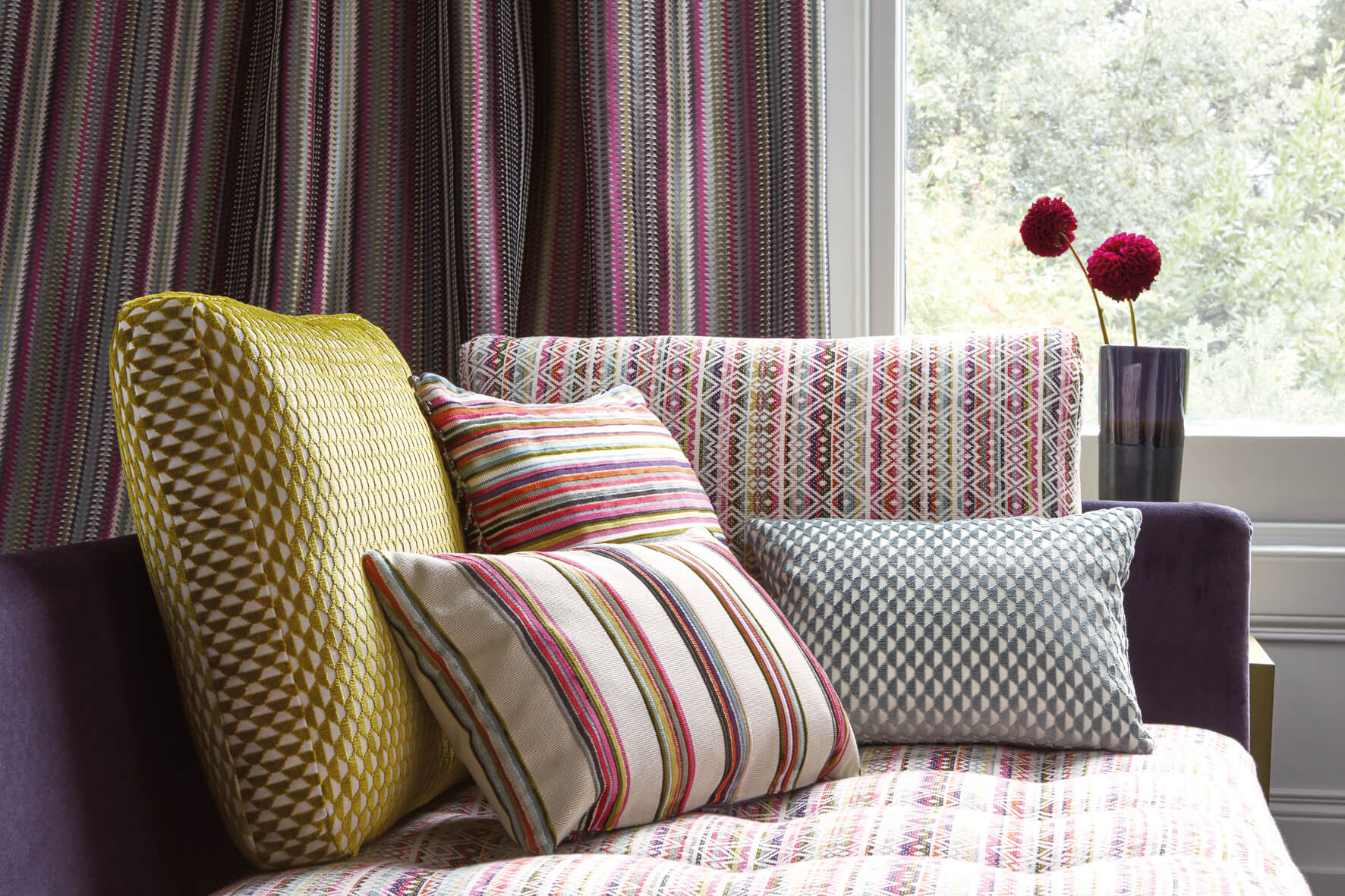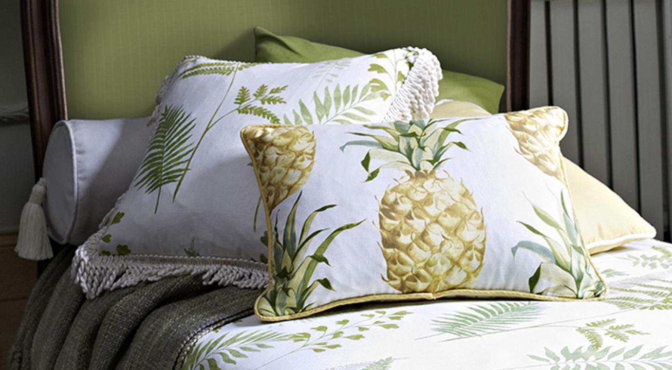 Our showroom fabric library consists of stunning designs and colours from suppliers from around the world which compliment our custom made cushions, bedheads, pelmets and furniture recovering. Visit our Sunshine Coast showroom to view our array fabrics, whether purchasing fabric to create your own soft furnishings or have us custom make to your needs.